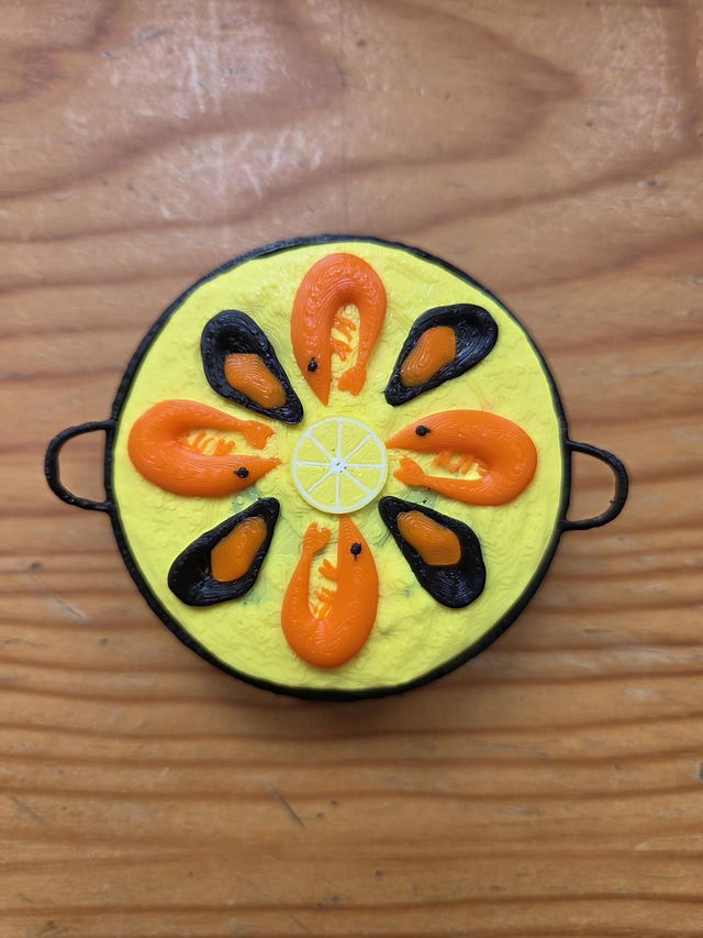 En esta ocasión os presentamos un pulsador antiestrés de paella, o como pueden decir desde otras zonas de nuestra gran pequeña Españita, "arroz con cosas". 🦐🍚